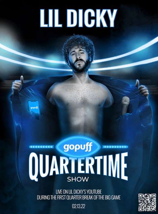 Be sure to tune in to the “Gopuff Quartertime Show” featuring Lil Dicky on Sunday, Feb. 13 at the conclusion of the first quarter! In addition to Twitter and Lil Dicky’s YouTube page, the “Gopuff Quartertime Show” will stream on Gopuff’s YouTube page, and be available to watch on Lil Dicky’s Instagram and Gopuff’s Instagram, Facebook and Twitter.