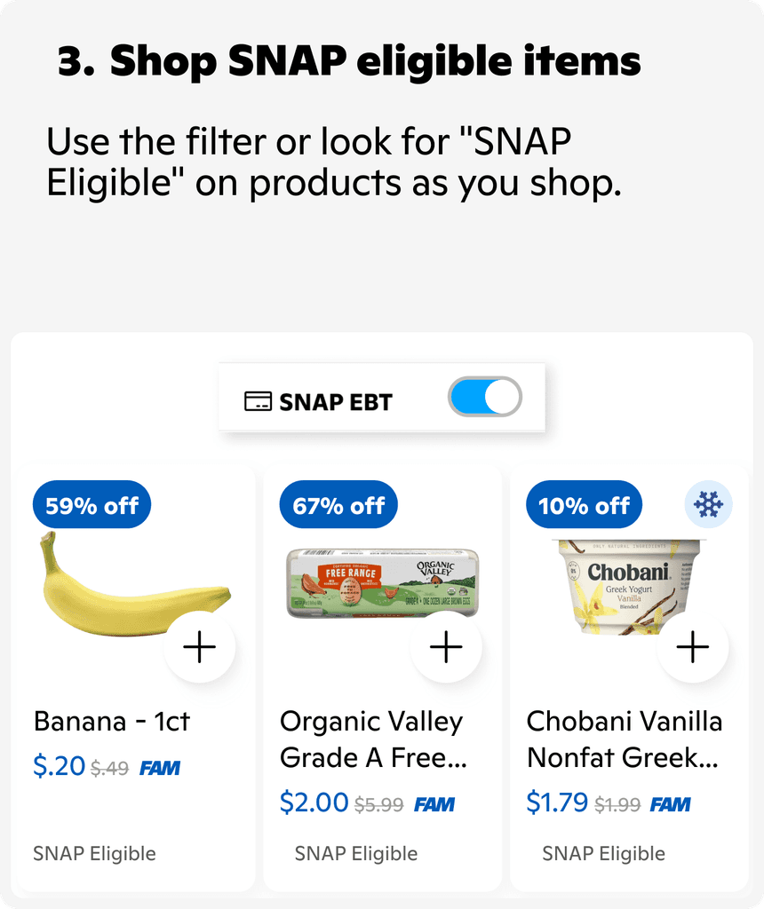 Enjoy free delivery on $35+ SNAP EBT orders in as fast as 15 minutes.