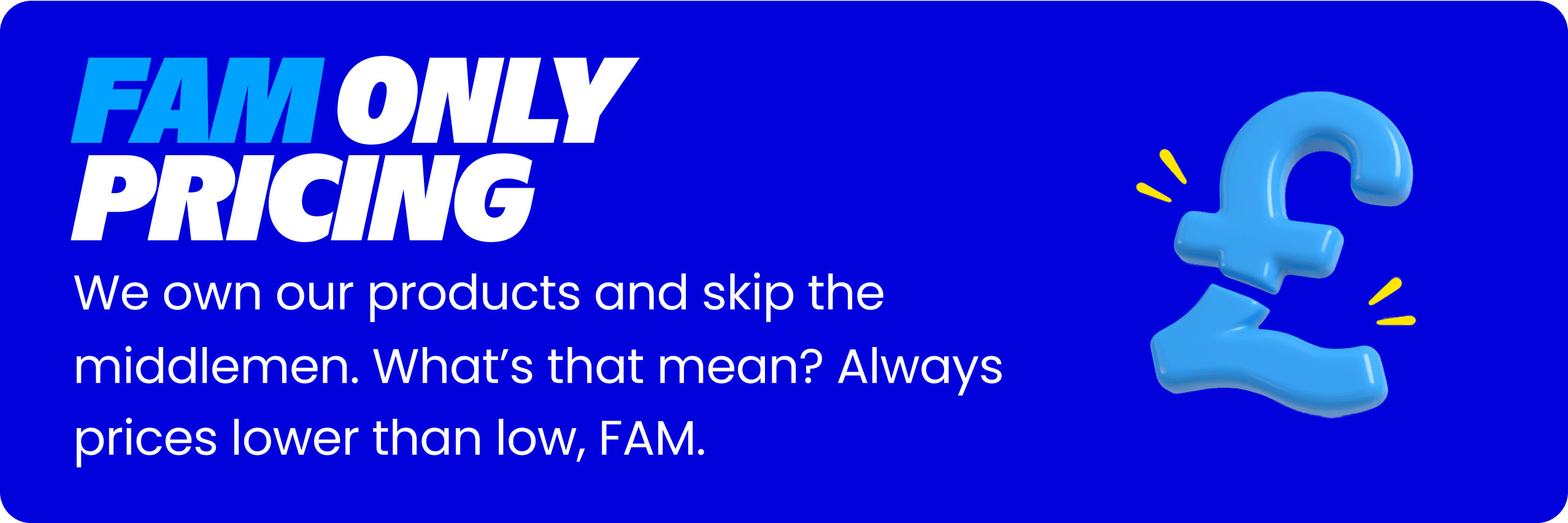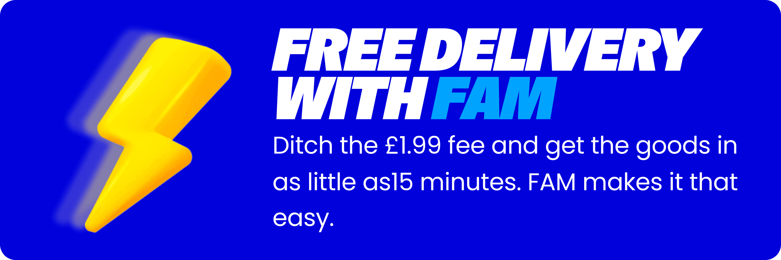 Sign up today for 50% off our regular FAM membership! Unlock free delivery on every order, access to insane weekly deals up to 80% off, and 100s of everyday items price matched or cheaper than Tescos and Aldi.