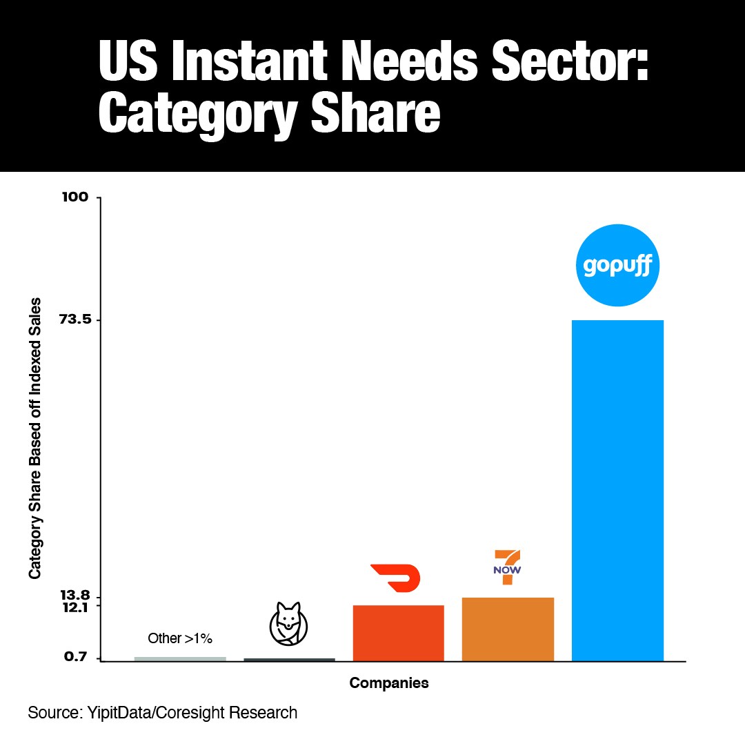 Gopuff has over 70% share of the US Instant Needs market (Yipit).